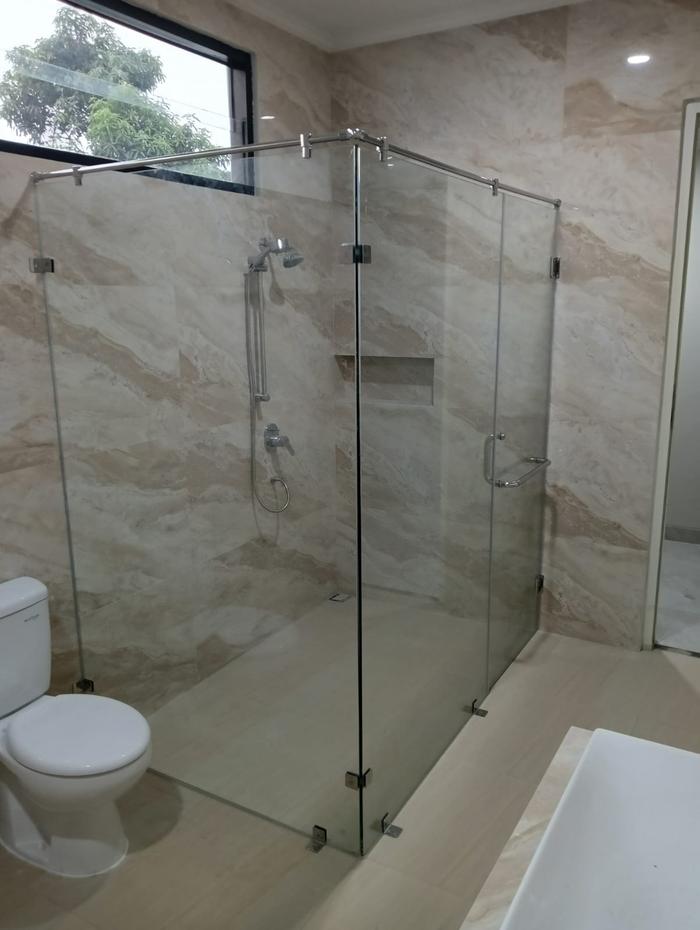 • Kaca shower frameless (tanpa frame)